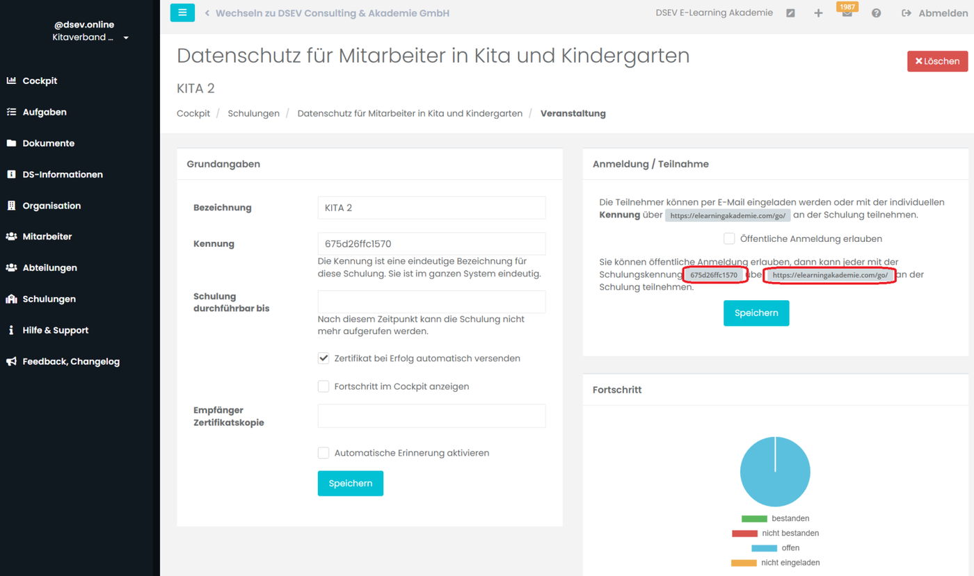 Fortschritt der Schulung Alternative: Öffentliche Einladung