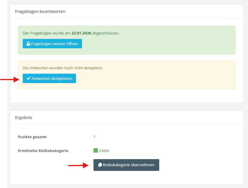 Antworten übernehmen und Risikokategorie setzen