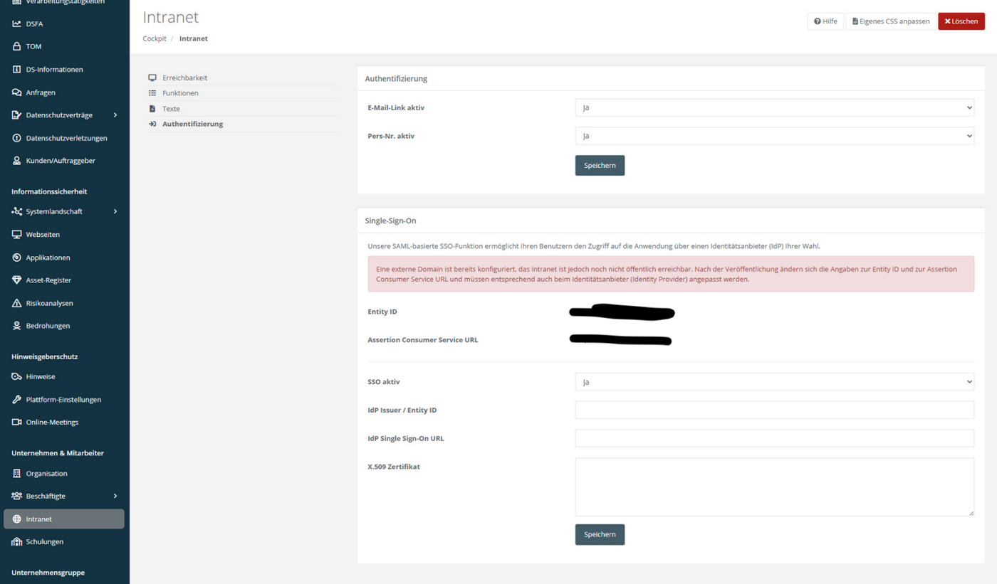 In diesem Abschnitt erfahren Sie, wie Mitarbeitende das Intranet nutzen können. Das Intranet stellt relevante Inhalte aus dem System bereit. Sichtbarkeit der Inhalte und verfügbare Anmeldemethoden werden von DSEV Tool-Benutzern mit entsprechenden Rechten festgelegt. Mitarbeitende können diese Inhalte nach der Anmeldung im Intranet einsehen, ohne selbst als Benutzer im System angelegt zu sein.