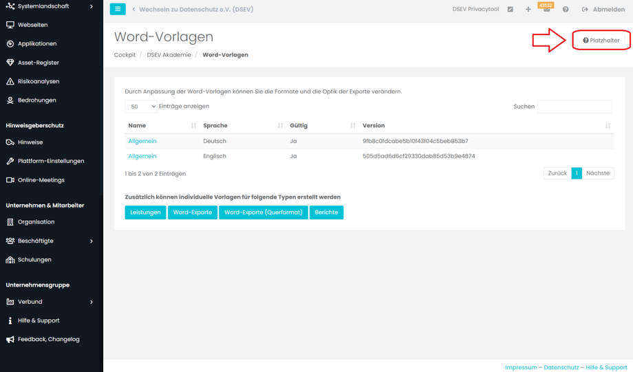 Word-Vorlagen: Übersicht und Anpassung von Platzhaltern