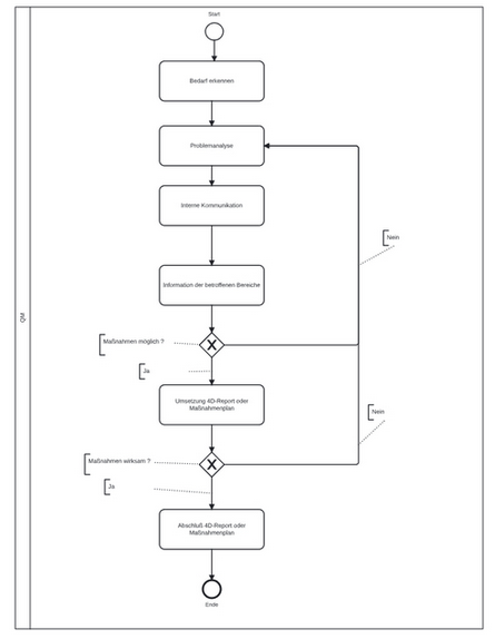 Wenn Sie Ihren Prozess zusätzlich visualisieren möchten, können Sie ein BPMN-Diagramm einfügen. BPMN (Business Process Model and Notation) ist ein international anerkannter Standard zur Beschreibung von Geschäftsprozessen. Die grafische Darstellung erleichtert das Verständnis komplexer Abläufe und fördert eine einheitliche Kommunikation. Weitere Informationen finden Sie unter www.bpmn.org (englisch) oder www.bpmn.de (deutschsprachig).