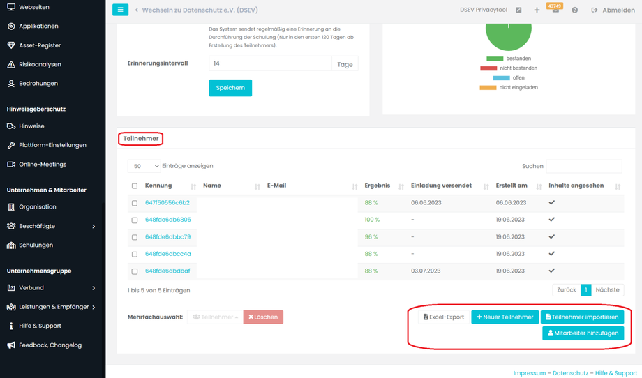 Unter der Rubrik Teilnehmer fügen Sie die Teilnehmer hinzu, entweder einzeln oder als Import einer CSV-Liste.