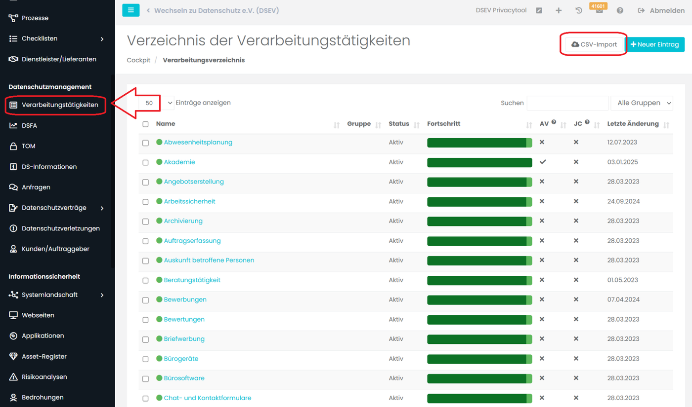Im Verzeichnis der Verarbeitungstätigkeiten legen Sie alle Verfahren der Organisation an.